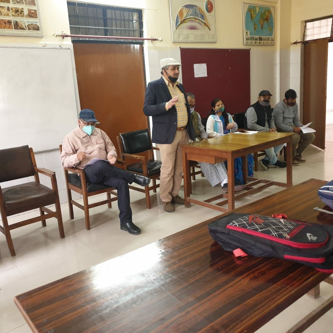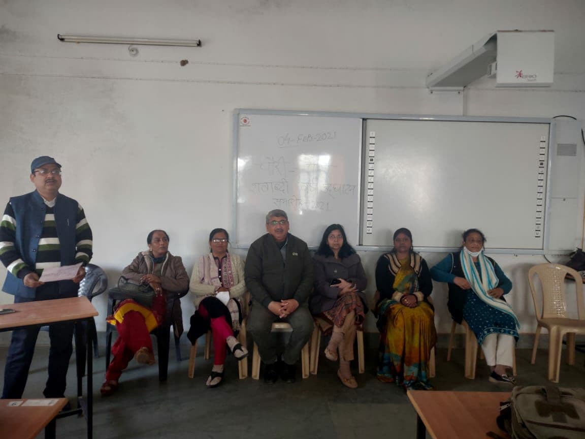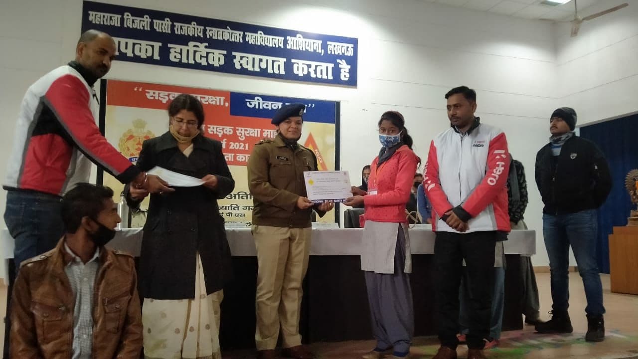 Assessment of entries of posters and slogans for final evaluation by respected judges. Road Safety Month celebration on 16/02/2021 at Maharaja Bijli Pasi Govt PG College, Aashiyana, Lucknow.