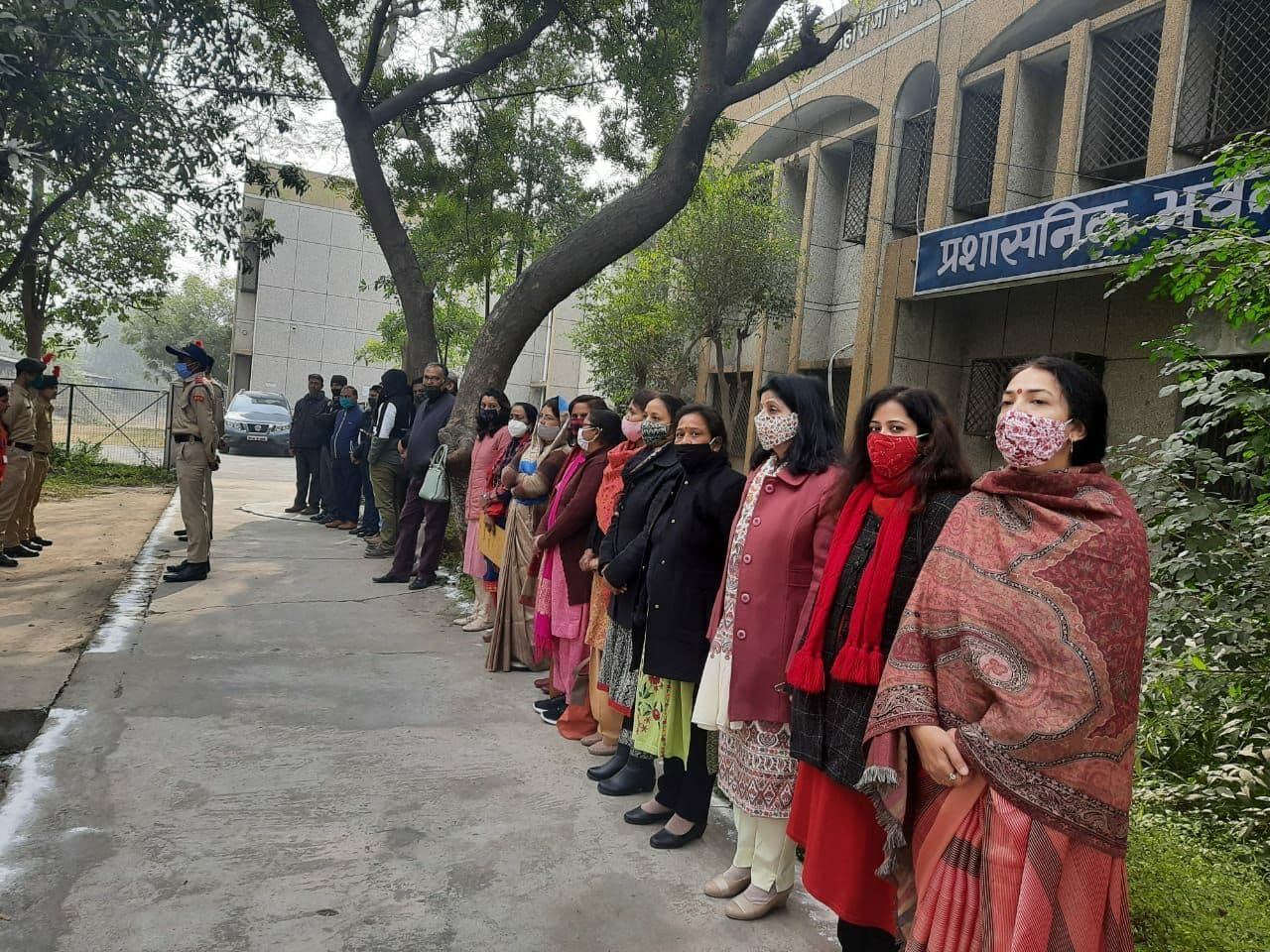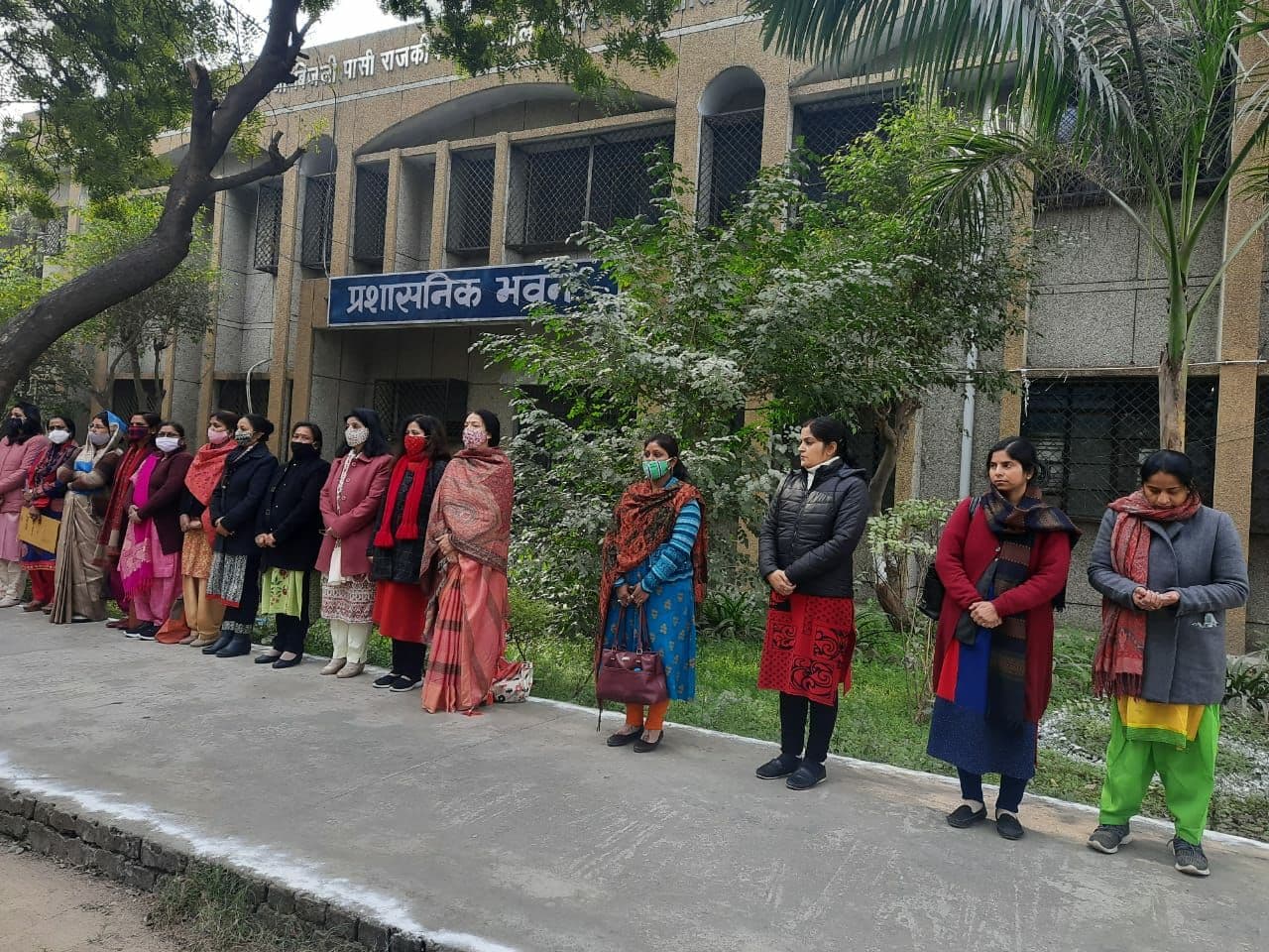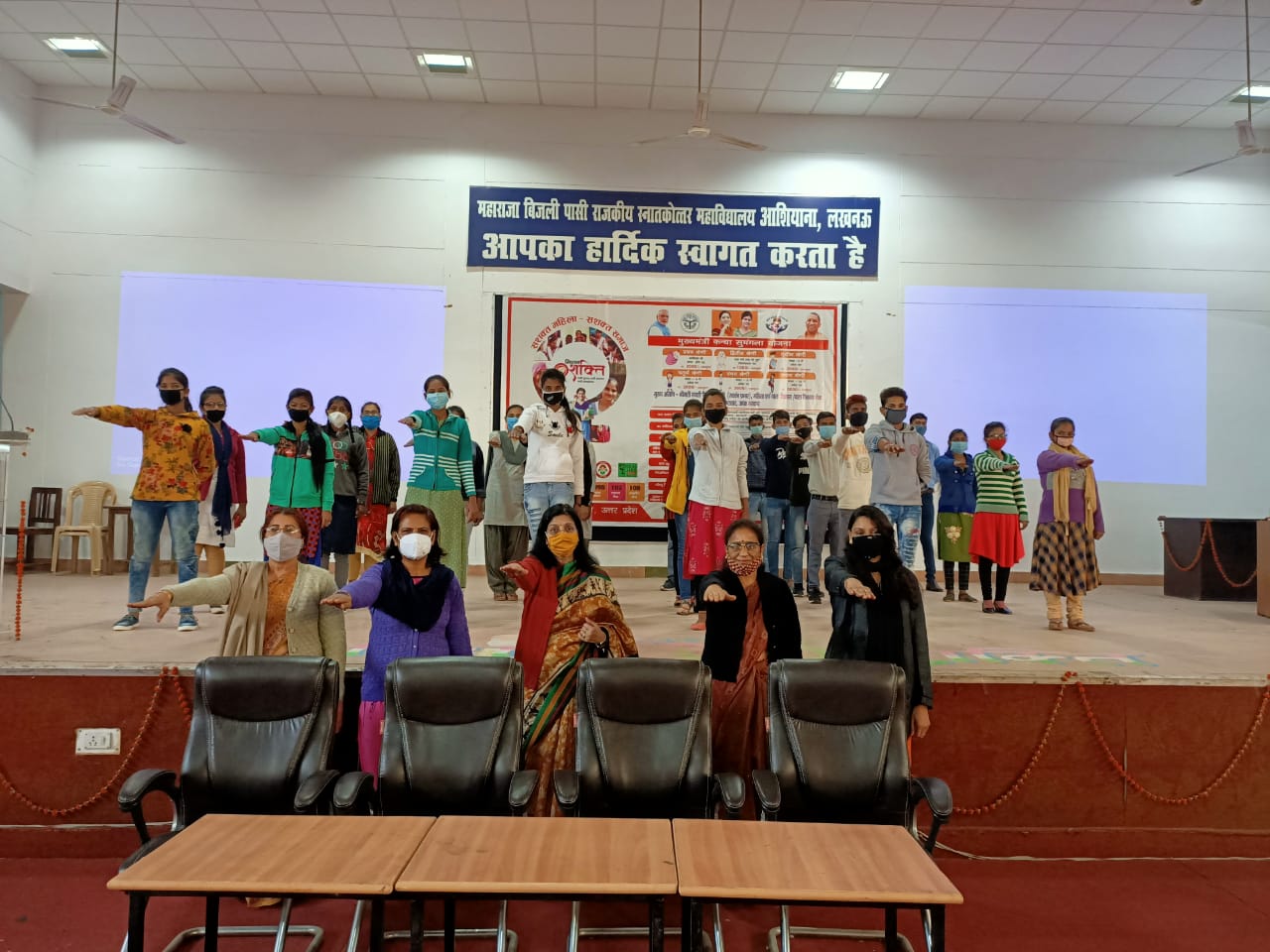 Assessment of entries of posters and slogans for final evaluation by respected judges. Road Safety Month celebration on 16/02/2021 at Maharaja Bijli Pasi Govt PG College, Aashiyana, Lucknow.
