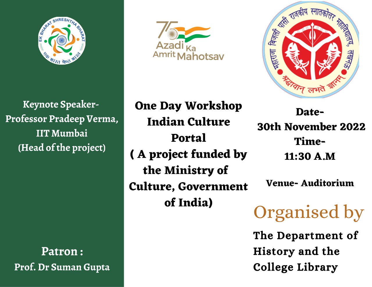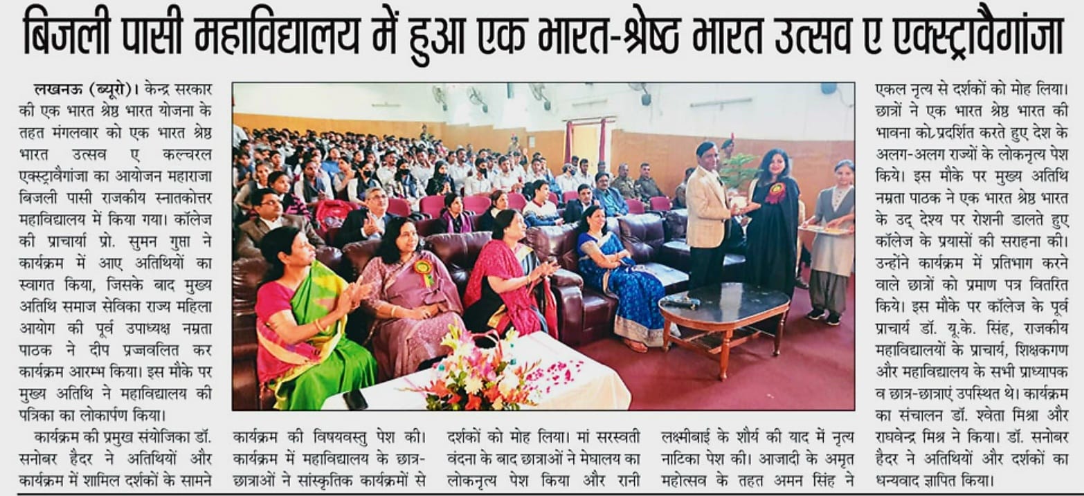 EBSB Webinar on the Culture of Uttar Pradesh and Meghalaya organized at Maharaja Bijli Pasi Govt PG College Aashiyana Lucknow on 26/08/2021 with Mr. Himanshu Bajpai and Prof. Amena Passah as Guest Speakers.