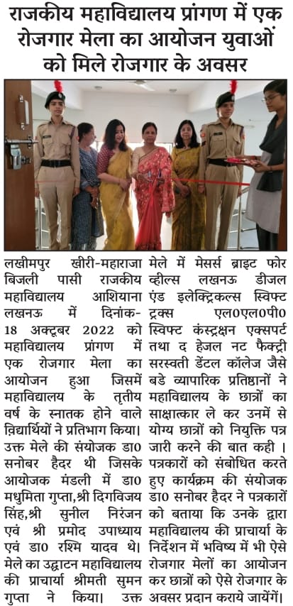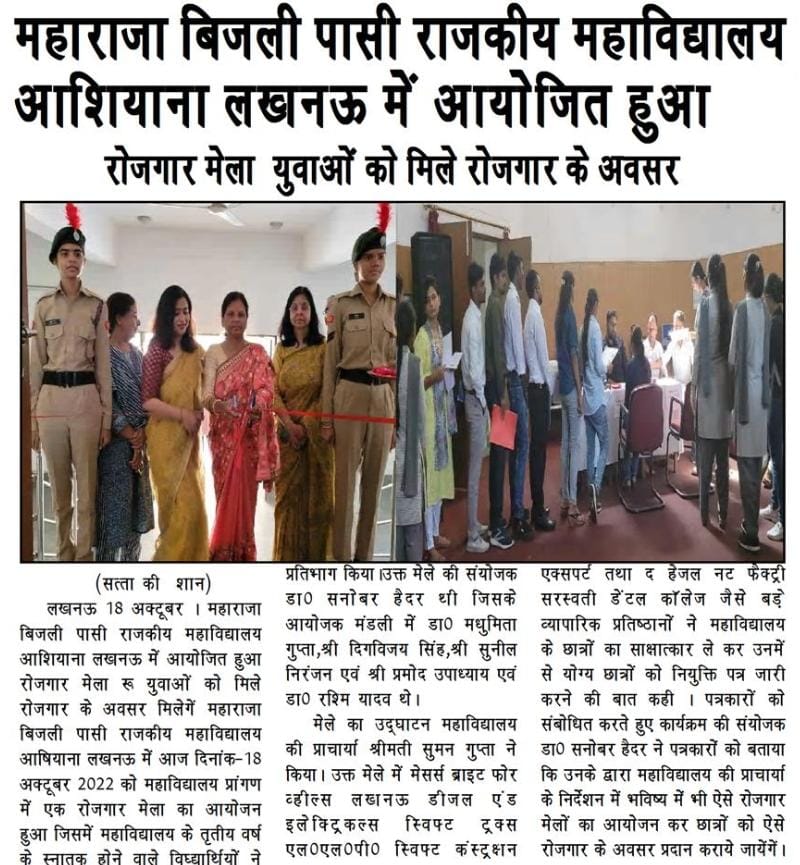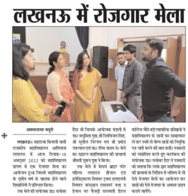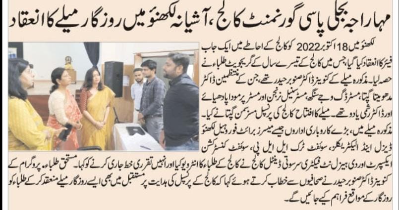 An Online Lecture was organised at Maharaja Bijli Pasi Govt P.G. College, Aashiyana, Lucknow on 29th July, 2021. The lecture was delivered by Ms Shahpar Kidwai - Department of Transport, Government of Uttar Pradesh.